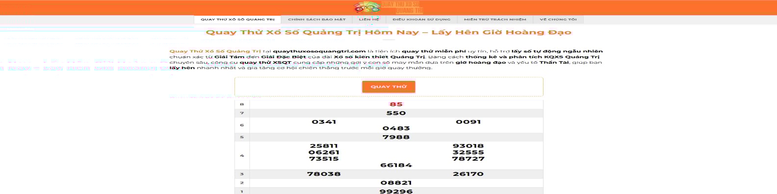 Quay Thử Xổ Số Quảng Trị là tiện ích quay thử miễn phí uy tín, hỗ trợ lấy số tự động ngẫu nhiên chuẩn xác từ Giải Tám đến Giải Đặc Biệt của đài Xổ số kiến thiết Quảng Trị.